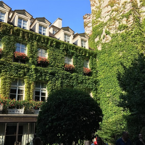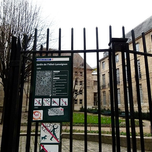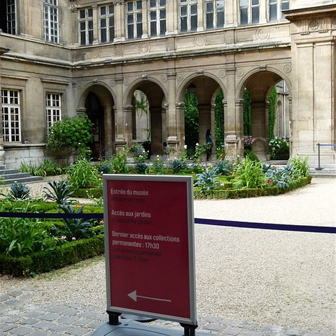 Harmonioso jardim junto à mansão construída no século XVI (Hôtel Donon), onde hoje funciona o Musée Cognacq-Jay - museu municipal da cidade de Paris. Entrada gratuita, com acesso pela rue Elzévir;